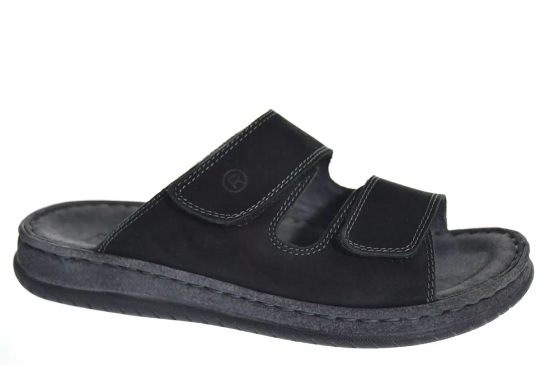 Ontdek de Rohde 6240 90 slippers voor heren. Gemaakt van luxe nubuck, zowel aan de buitenkant als de binnenkant, bieden deze slippers comfort en stijl. De dubbele klittenbandsluiting zorgt voor een perfecte pasvorm, terwijl het vaste suède voetbed extra ondersteuning biedt. De rubberen profielzool biedt grip en duurzaamheid. Verkrijgbaar in klassiek zwart. Perfect voor zowel binnen als buiten.