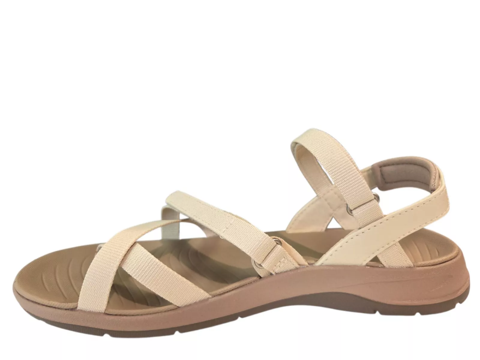 Een veelzijdige sandaal die comfort, functionaliteit en een tijdloze beige uitstraling moeiteloos combineert.