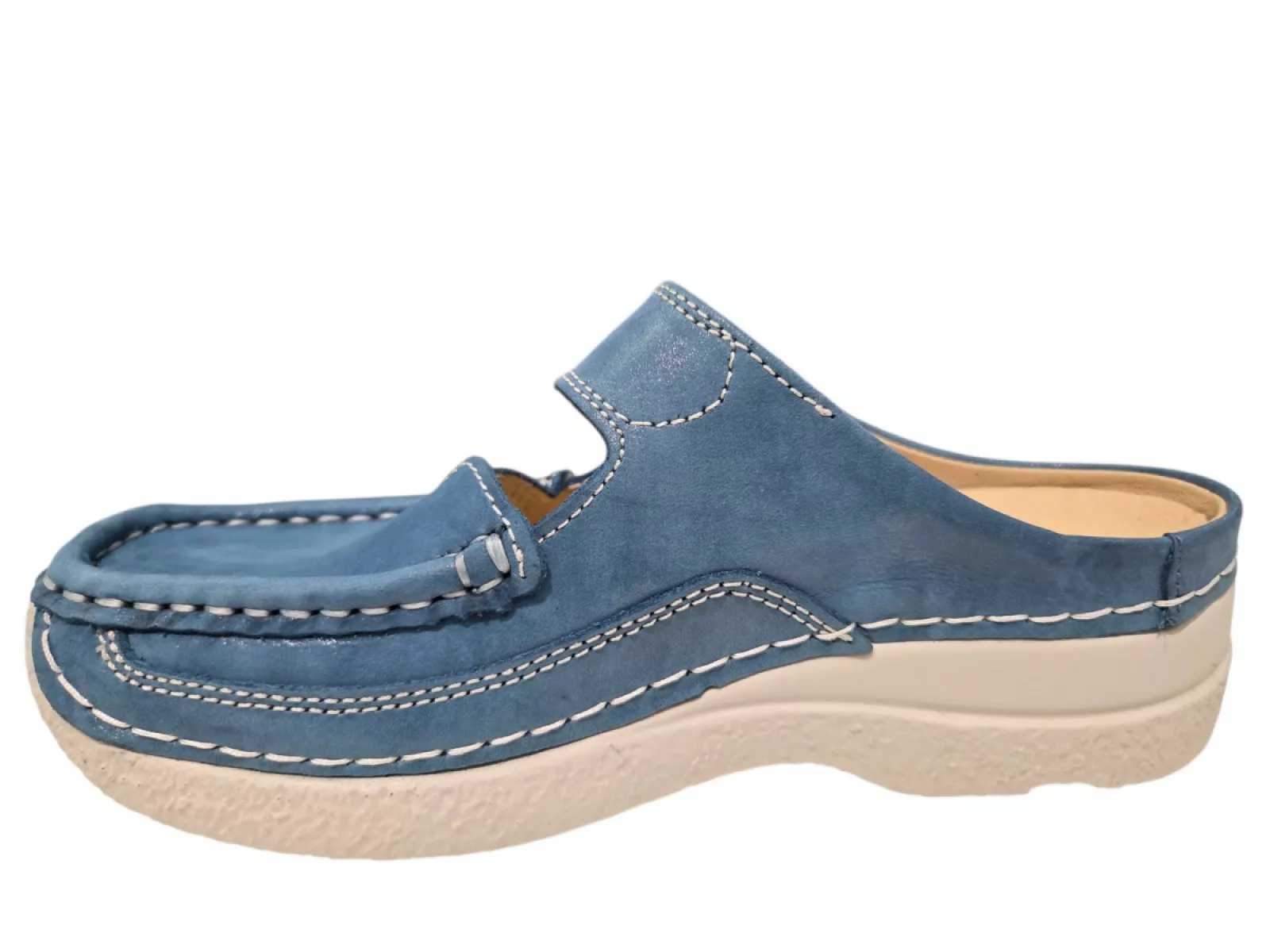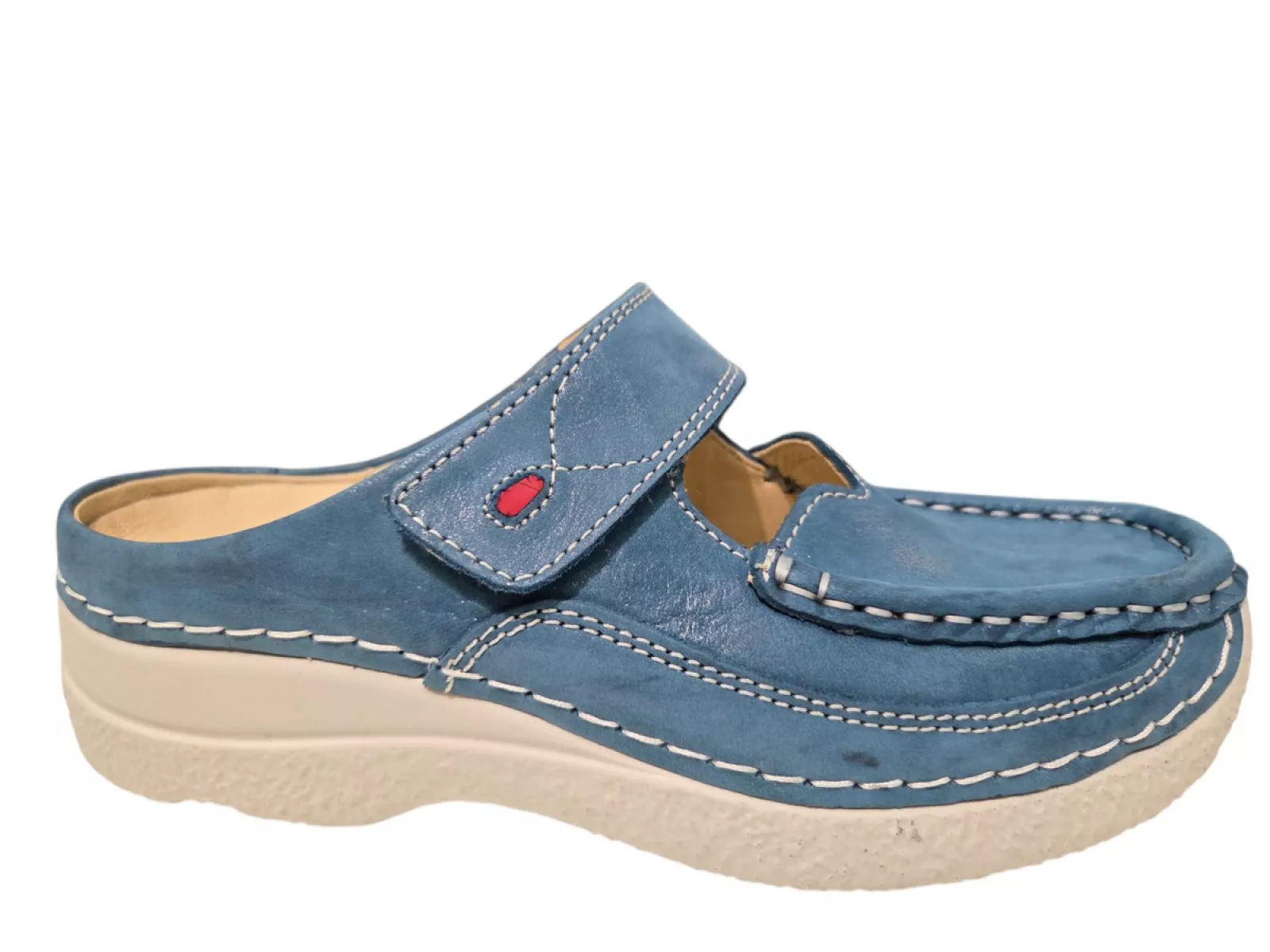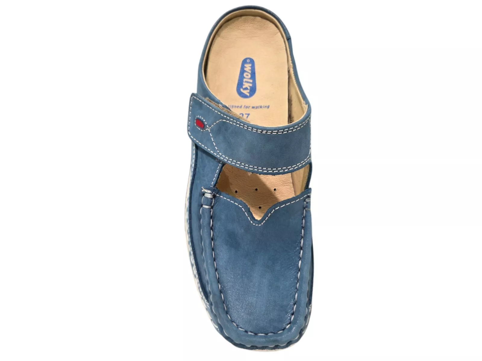 Wolky 0622736 Roll Slipper Blauw 804 – Dames Muilen Leer – Uitneembaar Voetbed – Klittenband – Normale Pasvorm – Voorjaar Zomer 2026